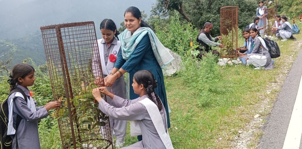 गोपेश्वर (चमोली)। चमोली जिला मुख्यालय गोपेश्वर में चरण पादुका गोथल समिति एनईएच और बालिका इंटर कालेज की एनएसएस की बालिकाओं की ओर से रक्षाबंधन की पूर्व बेला पर पेड़ों पर रक्षा सूत्र बांधकर पर्यावरण को संरक्षित करने का संकल्प लिया गया।