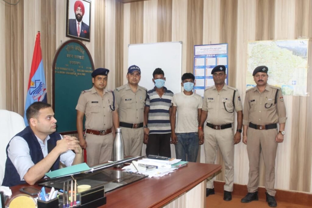 उत्तरकाशी। दिनांक 26/07/2024 को वादिनी प्यारी देवी निवासी खरसाडी, मोरी द्वारा थाना मोरी पर आकर एक लिखित तहरीर दी गयी, जिसमें उनके द्वारा बताया गया कि उनका पति गिरवीर सिंह 24 जुलाई 2024 को अपने खेतों की देखभाल हेतु पोल्हाडी नामक तोक गया था, उसी दौरान सुधीर चड्ढा एण्ड कम्पनियों के कर्मचारियों द्वारा उनके पति के साथ मारपीट कर उसकी हत्या की गयी व मृत शरीर को पास में केदार गंगा नदी फेंक दिया गया, जिनका शव उनके द्वारा 25 जुलाई को केदार गंगा नामक गदेरे से बरामद किया गया। तहरीर के अधार पर पुलिस द्वारा उक्त मामले में थाना मोरी पर सुधीर चड्डा कम्पनी के अज्ञात कर्मचारियों के विरुद्ध मु.अ.सं.- 09/24 धारा- 103(1) बीएनएस पंजीकृत बनाम पंजीकृत किया गया। मामले की गम्भीरता को देखते हुये पुलिस अधीक्षक उत्तरकाशी, अर्पण यदुवंशी सम्बन्धित पुलिस अधिकारियों को कडे दिशानिर्देश देते हुये हत्या के अनावरण व अभियुक्तों की गिरफ्तारी हेतु अलग-अलग पुलिस टीमें गठित की गयी। अभियोग की विवेचना थानाध्यक्ष पुरोला, मोहन सिंह कठैत के सुपुर्द की गयी। पुलिस उपाधीक्षक उत्तरकाशी, प्रशान्त कुमार के निकट पर्यवेक्षण तथा थानाध्यक्ष पुरोला मोहन सिंह कठैत एवं थानाध्यक्ष बड़कोट दीपक कठैत के नेतृत्व में पुलिस व एसओजी की टीम द्वारा उक्त प्रकरण में गहन पतारसी-सुरागरसी करते हुये फोन कॉल, लोकेशन आदि टेक्निकल सपोर्ट से साक्ष्य एकत्र कर ब्लाइंड मर्डर केस का खुलासा किया गया। हत्या की घटना को अंजाम देने वाले नेपाली मूल के 2 अभियुक्तों वीर बहादुर व प्रेम बहादुर कल 30 जुलाई 2024 को गिरफ्तार किया गया है।