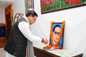 मुख्यमंत्री धामी ने भारतीय संविधान के निर्माता भारत रत्न बाबा साहेब डॉ. भीमराव आंबेडकर की पुण्यतिथि पर मुख्यमंत्री आवास में उनके चित्र पर किये श्रद्धासुमन अर्पित