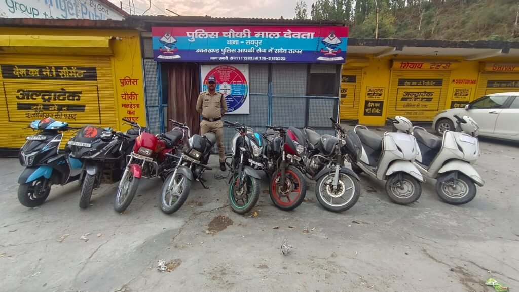 देहरादून के थाना रायपुर क्षेत्र मे यातायात के नियमो का उल्लंघन करने वालो के विरूद्ध प्रभावी कार्यवाही करते हुए आज दिनांक 19.05.2024 को थाना रायपुर पुलिस द्वारा सहस्त्रधारा रोड, मालदेवता रोड, थानो रोड तथा बालावाला रोड में चैकिंग अभियान चलाया गया। उक्त चैकिंग अभियान के दौरान सडक पर रस ड्राइविंग, स्टंट बाइकिंग , ट्रिपल राइडिंग व उपद्रव करते पाये जाने पर 24 वाहनों को MV.ACT के अंतर्गत सीज किया गया तथा अन्य 36 वाहनों का चालान पर 20,000/-रू0 का जुर्माना वसूला गया । उक्त अभियान लगातार जारी है।