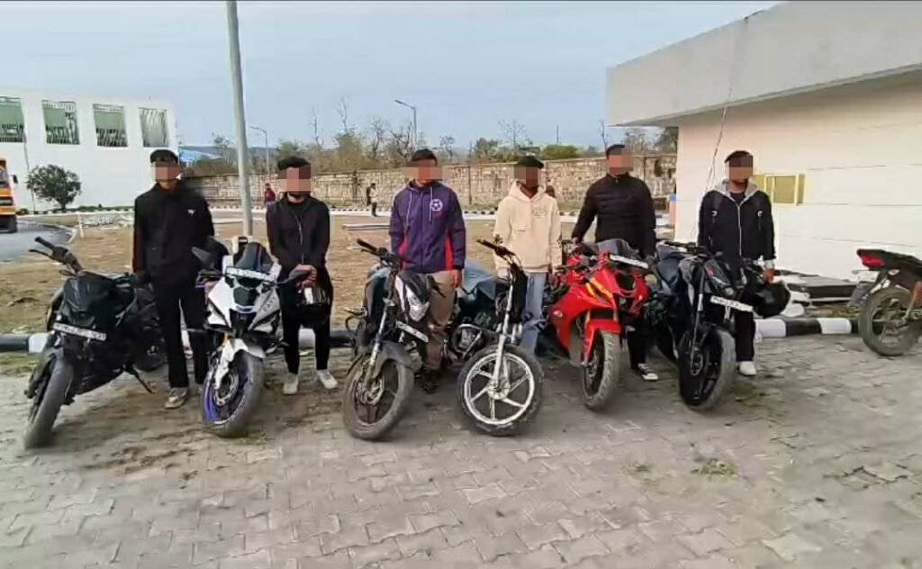 आज दिनांक 19/01/25 को रायपुर थानों रोड पर बाइक स्टंटबाजों द्वारा मुख्य सड़क पर खतरनाक तरीके से बाइक चलाना एवं स्टंट करने की सूचना पर वरिष्ठ पुलिस अधीक्षक देहरादून द्वारा थानाध्यक्ष रायपुर को तत्काल कारवाई करने के आदेश दिए गए थे। जिस पर थानाध्यक्ष रायपुर द्वारा तत्काल स्टंट बाजों को पकड़ने एवं कारवाई करने हेतु चौकी प्रभारी मालदेवता एवं चौकी प्रभारी महाराणा प्रताप स्पोर्ट्स कॉलेज के नेतृत्व में 2 टीमें गठित की गई। गठित टीमो द्वारा त्वरित कारवाई करते हेतु मौके पर पहुँच कर वाहनो को खतरनाक तरीके से चलाते हुए स्टंट बाज़ी कर रहे 06 बाइकर्स की मोटरसाइकिलो को सीज किया गया साथ ही सार्वजनिक मार्ग पर स्टंट बाज़ी कर अपनी तथा दूसरों की जान खतरे में डालने वाले 6 स्टंटबाज बाइकर्स के पुलिस एक्ट के तहत चालन किए गए। यातायात नियमो का उल्लंघन करने वालो के विरुद्ध पुलिस का अभियान लगातार जारी है ।