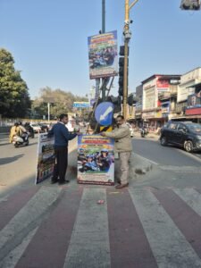 सड़क सुरक्षा माह के अंतर्गत देहरादून शहर के प्रमुख मार्गों पर जनजागरूकता बैनर एवं पोस्टर लगाए गए हैं, जिनमें आमजन को विभिन्न सड़क सुरक्षा संदेशों के प्रति जागरूक किया जा रहा है, जैसे— शराब पीकर वाहन न चलाएँ (ड्रिंक एंड ड्राइव नहीं), ट्रिपल राइडिंग न करें, राइडर एवं पिलियन दोनों हेलमेट पहनें, वाहन में सभी यात्री सीट बेल्ट लगाएँ, रेड लाइट पर अवश्य रुकें/रेड लाइट जंप न करें, एम्बुलेंस को रास्ता दें, तथा यातायात नियमों का पालन करें। साथ ही किशोर द्वारा वाहन चलाने (Juvenile Driving) के संबंध में मोटर वाहन अधिनियम की धारा 199A के तहत विशेष जागरूकता संदेश भी प्रसारित किए जा रहे हैं।