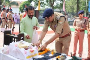 आज विजयदशमी के पावन अवसर पर वरिष्ठ पुलिस अधीक्षक देहरादून द्वारा पुलिस लाइन देहरादून स्थित शस्त्रागार में विधिवत शस्त्र पूजन किया गया। पुलिस विभाग में वर्षों से चली आ रही इस परम्परा के दौरान पुलिस अधिकारियों तथा जवानांे द्वारा शस्त्रों की पूजा करते हुए अपने शांति, सेवा तथा सुरक्षा के मूल मंत्र को दोहराते हुए बेहतर एवं सुरक्षित समाज के संकल्प को दोहराया गया। इसके उपरान्त वरिष्ठ पुलिस अधीक्षक देहरादून द्वारा पुलिस लाइन स्थित अश्वशाला में नवनिर्मित सूर्या मन्दिर का पूजा अर्चना करते हुए विधिवत उद्घाटन किया गया।