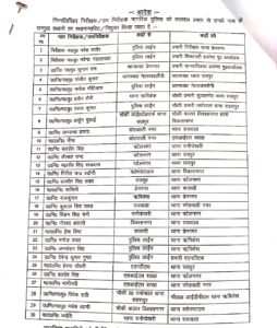 प्रेमनगर थाने से कुंदन राम की जगह नरेश राठौर को जिम्मेदारी सौंपी गई है। नरेश को पुलिस लाइन से भेजा गया है। इसके अलावा संजीत कुमार को नेहरु कॉलोनी थाने से हटाकर रायपुर थाने भेजा गया है। नहरू कॉलोनी थाने का प्रभारी मनोज नौटियाल को बनाया गया है। मनोज को पुलिस लाइन से भेजा गया है। इसके अलावा कुठालगेट का चौकी प्रभारी प्रवीन सैनी को बनाया गया है।आई टी पार्क चौकी इंचार्ज अर्जुन गुसाई को विकासनगऱ की बाजार चौकी की ज़िम्मेदारी दीं है इसके अलावा 25 और अधिकारियों को इधर से उधर भेजा गया है।