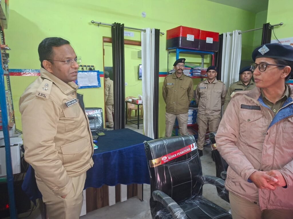 आज वरिष्ठ पुलिस अधीक्षक टिहरी आयुष अग्रवाल ने थाना छाम का औचक निरिक्षण किया एसएसपी ने सबसे पहले , थाना कार्यालय का निरीक्षण कर CCTNS की कनेक्टिविटी एवं समस्त पोर्टल की जानकारी ली तथा वर्तमान में प्रचलित सभी पोर्टलों को प्रति दिन चैक कर आवश्यक कार्यवाही करने हेतु निर्देशित किया गया । एवं थाना कार्यालय के सभी रिकोर्ड को भी अपडेट करने हेतु आदेशित किया गया ।तत्पश्चात थाना मैस का निरीक्षण किया गया साफ-सफाई ठीक पाई गयी स्थानीय/पहाड़ी भोजन सप्ताह में एक बार बनाने हेतु निर्देशित किया गया ।तत्पश्चात थाने के मालखानों का निरीक्षण किया मालखानों में रखे हुए लम्बित मालों की जानकारी ली गई तथा लम्बित मालों के निस्तारण हेतु आदेशित किया गया ।तत्पश्चात थाने पर मौजूद सभी अधिकारी कर्मचारी गणों का सम्मेलन लिया गया दौराने सम्मेलन सभी मौजूद अधिकारियों की समस्याओं के बारे में पूछा गया । तथा आगामी क्रिसमस त्यौहार एवं नववर्ष साल के दृष्टिगत निम्न दिशा निर्देश दिए गए ।