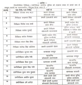 एसएसपी ने देर रात 14 निरिक्षको और उप निरीक्षको के किये तबादले, किसे कहां से कहां भेजा देखे पूरी लिस्ट।
