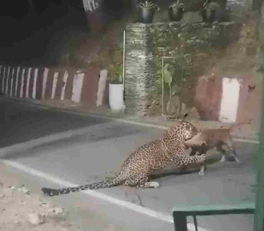 उत्तरकाशी शहर क्षेत्र में गुलदार का आतंक लगातार बढ़ता जा रहा है, जिले के माही डांडा स्थित ITBP गेट के पास गुलदार ने कुत्ते को अपना शिकार बनाया है, गुलदार और कुत्ते के बीच हुई जोरदार संघर्ष के बाद गुलदार कुत्ते को करीब 250 मीटर तक घसीटते हुए ले गया, इलाके में दहशत का माहौल बना हुआ है स्थानीय लोगों में रात के समय सुरक्षा को लेकर चिंता बढ़ गई है, वन विभाग को पूरे घटनाक्रम की सूचना दी गई है, ग्रामीणों ने गश्त बढ़ाने और पिंजरा लगाने की भी मांग की है।