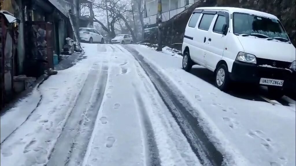 पहाड़ों की रानी मसूरी में एक बार फिर मौसम ने अचानक करवट बदल ली है। देर रात हुई तेज बारिश और ओलावृष्टि से मसूरी की सड़कों और खुले इलाकों में सफेद चादर बिछ गई, जिसे देखकर लोग पलभर के लिए इसे बर्फबारी समझ बैठे। अचानक बदले इस मौसम ने मसूरी के नज़ारों को एक बार फिर बेहद खूबसूरत बना दिया। देर रात शुरू हुई बारिश के साथ हुई ओलावृष्टि के चलते तापमान में भारी गिरावट दर्ज की गई है। ठंड बढ़ने से स्थानीय लोगों और पर्यटकों को फिर से सर्दी का एहसास होने लगा है। लोग ठंड से बचने के लिए अलाव और गर्म कपड़ों का सहारा लेते नजर आए। सुबह होते ही कई इलाकों में लोग ओलों को हाथ में लेकर फोटो और वीडियो बनाते दिखे और इस नज़ारे का जमकर आनंद लिया।