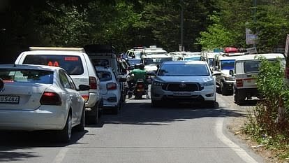 उत्तराखंड के नैनीताल में उमड़े पर्यटक, कई किलोमीटर लंबा जाम, रेंगती गाड़ियों के बीच लोग परेशान; तस्वीरों में देखें नजारा……
