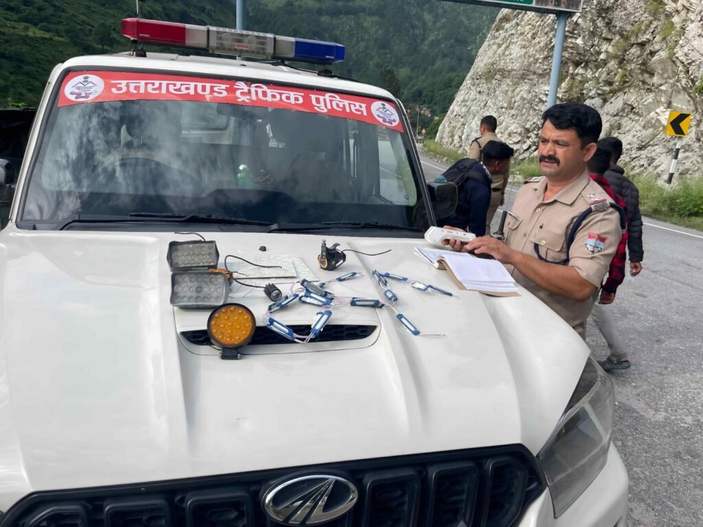 यातायात उप निरीक्षक दिगम्बर उनियाल ने बदरीनाथ राष्ट्रीय राजमार्ग पर चैकिंग के दौरान कई वाहनों को बिना किसी वैध प्राधिकरण के फ्लैशर और नीली बत्ती का उपयोग करते हुए पाए गए 13 वाहनों की लाइटें उतारकर उनके विरूद्ध एमवी एक्ट के तहत चालानी कार्रवाई की गयी।