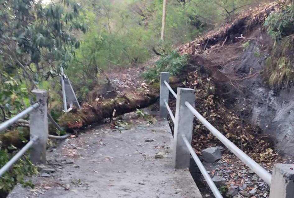 देवाल (चमोली)। चमोली जिले के देवाल विकास खंड के दिदिना में सोमवार तेज आंधी तुफान से पेड़ गिरने से विद्युत लाइन क्षतिग्रस्त होने से विस्थापित गांव की बिजली आपूर्ति ठप हो गई है, वहीं पेड़ गिरने से गांव को जाने वाले पैदल रास्ते के इजराटोन गधेरे में बनी पुलिया की रेलिंग, सुरक्षा दीवार क्षतिग्रस्त होने से आवाजाही में दिक्कत हो रही है। ग्राम प्रधान हुकम सिंह बिष्ट ने कहा कि गांव कि बिजली लाइन के ऊपर पेड़ गिरने से तार टूट गए और सप्लाई बंद हो गई है। और गधेरे में बनी पुलिया के रिलिग टूटने से आवाजाही दिक्कत आ रही है। बिजली विभाग के जेई हेमंत चमोला ने बताया है तारों को जोड़ा जा रहा। सोमवार की शाम तक बिजली सप्लाई बहाल कर दी जाएगी।