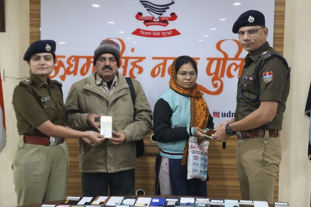 एसएसपी मणिकांत मिश्रा ने 110 खोये मोबाइल धारको के चेहरे पर मुस्कान लौटा कर नये साल का तोहफा दिया है आज पुलिस कार्यालय रुद्रपुर में नए साल के अवसर पर वरिष्ठ पुलिस अधीक्षक मणिकांत मिश्रा ने जनपद वासियों के चेहरों पर मुस्कान बिखेरते हुए एक शानदार पहल की है। ऊधम सिंह नगर पुलिस की एसओजी और सर्विलांस टीम ने कड़ी मेहनत के बाद विभिन्न थाना क्षेत्र से खोए हुए 110 मोबाइल फोन बरामद किए, जिन्हें आज एसएसपी द्वारा उनके मूल स्वामियों को सुपुर्द किया गया