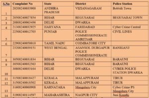 प्रारम्भिक पूछताछ में अभियुक्त ने साईबर अपराध हेतु जिन बैंक खातों का प्रयोग किया गया है उसमें करोड़ों रूपयों का लेनदेन होना प्रकाश में आया है । *जाँच में यह भी प्रकाश में आया है कि अभियुक्त के बैंक खाते के विरुद्ध देश के कई राज्यों में कुल 14 साईबर अपराधों की शिकायतें निम्नवत दर्ज हैं-*