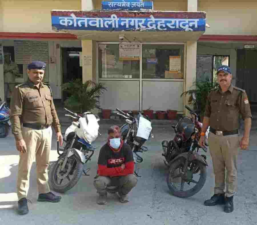 पुलिस द्वारा किये जा रहे प्रयासो से मुखबिर की सूचना पर दिनांक 19-11-2024 की सुबह वाहन चोरी की घटनाओ को अंजाम देने वाले अभियुक्त विनीत सजवाण पुत्र महेन्द्र सिंह सजवाण को मद्रासी कॉलोनी क्षेत्र में एक खंडर के पास से गिरफ्तार किया गया, जिसकी निशानदेही पर अभियुक्त द्वारा खंडर के अंदर छुपाकर रखी गयी चोरी की 03 मोटरसाइकिले बरामद की गई, जिनके संबंध में कोतवाली नगर तथा कोतवाली डालनवाला में वाहन चोरी के अभियोग पंजीकृत है।
