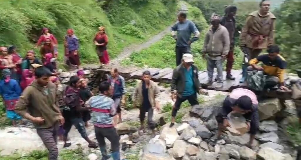 देवाल (चमोली)। चमोली जिले के देवाल क्षेत्र के दूरस्थ गांव में वाण में बीते 25 जुलाई की रात्रि को हुई भारी बारिश के कारण घटगाड और साकुलीगाड ग्रामीणों की ओर से बनाया गया वैकल्पिक कच्चा पुल बह गया था जिससे ग्रामीणों को आवाजाही में भारी परेशानियों का सामना करना पड़ रहा था। यहां तक की स्कूली बच्चों को भी पांच किलोमीटर की अतिरिक्त दूरी तय कर विद्यालय तक पहुंच रहे थे। ग्रामीणों ने शनिवार को श्रमदान कर दोनों स्थानों पर फिर से कच्चा पुल बना कर आवाजाही शुरू कर दी है।