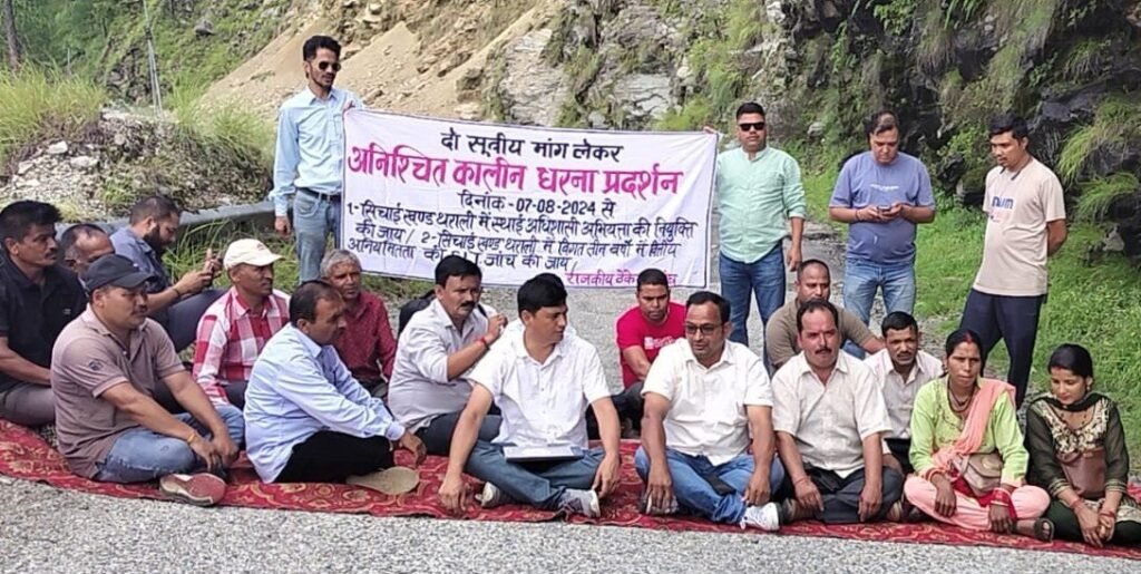 ठेकेदार संघ सात अगस्त से थराली सिंचाई खंड में स्थाई अधिशासी अभियंता का पद भरने और सिंचाई खंड के विगत तीन वर्ष मे किए कार्यों की एसआईटी जांच करने की मांग को लेकर आंदोलित है। शनिवार को देवाल थराली मोटर मार्ग के पालेभ्योल में सड़क पर मलबा आने से बंद है। थराली जा रहे ठेकेदार संघ वहीं सड़क पर धरने पर बैठ गए। संघ के अध्यक्ष पुष्कर फर्स्वाण, संयोजक महावीर बिष्ट ने आरोप लगाते हुए कहा है कि सिंचाई खंड के प्रभारी अधिशासी अभियंता राजकुमार ने भारी मात्रा में सरकारी धन का दुरपयोग किया है। उन्होंने कहा कि जब तक उनकी मांग पूरी नहीं होती आंदोलन जारी रहेगा। प्रदर्शनकारियों में लखन रावत, महिपाल सिंह, रणजीत सिंह, जानकी देवी, सीमा देवी, हरेंद्र कोटेडी, किशोर राम, केडी कुनियाल, बंशी राम, रणजीत राम आदि मौजूद थे।